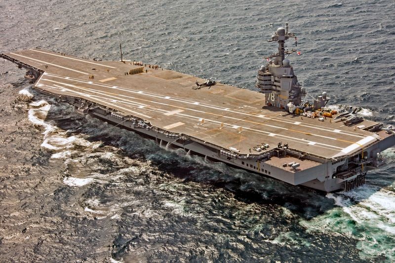 Стоимость новейшего американского авианосца составляет 12,9 млрд долл. Корабль также является самым большим в мире. Его длина – 333 метра. На его борту может разместиться 4.400 человек и 75 единиц авиатехники, в том числе истребители F-35. В церемонии ввода в эксплуатацию корабля в мае 2017 года принимал участие президент США Дональд Трамп. Он назвал авианосец «100 000-тонным посланием миру».