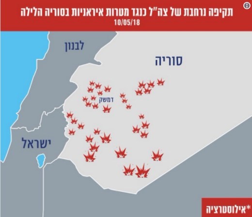 Ответ не заставил себя долго ждать. Проправительственные иранские формирования осуществили массированный обстрел позиций израильской армии на Голанских высотах. Во время первого удара было выпущено свыше 20 ракет из систем залпового огня.