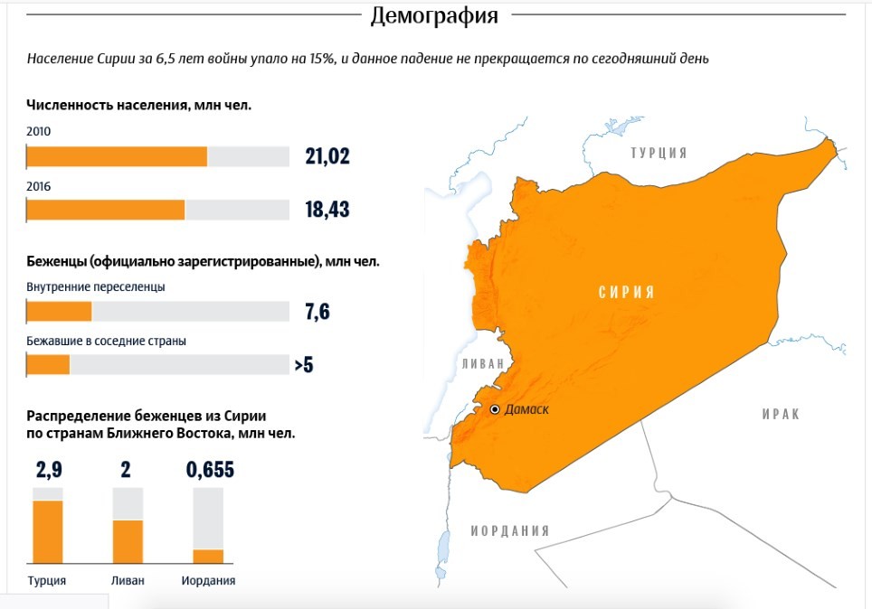 Сирия находится в состоянии гражданской войны с 2011 года, правительственные силы борются с многочисленными оппозиционными группировками и террористическими организациями. Война привела к гуманитарной катастрофе с более чем 13 миллионами нуждающихся в гуманитарной помощи жителями, и более 7 миллионов человек числятся в статусе внутренне перемщенных лиц.