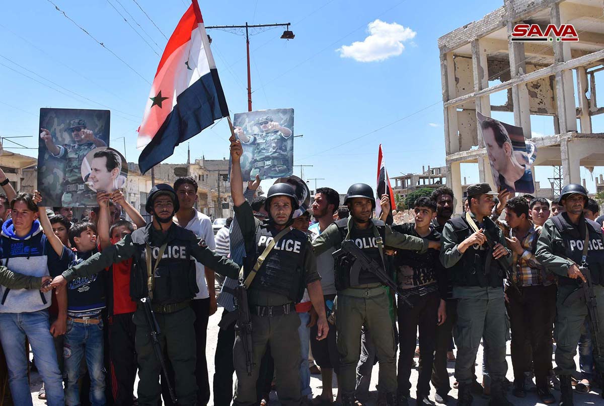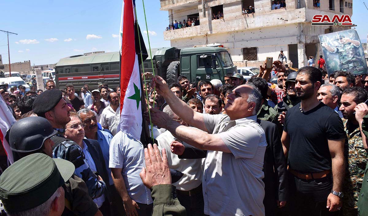 Накануне над административными зданиями города Ар-Растан и поселка Тельбиса на севере провинции Хомс после полной зачистки этого региона от террористов в торжественной обстановке были водружены сирийские национальные флаги.