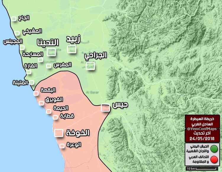 14.20 Просаудовские силы продолжают наступление вдоль побережья Красного моря по направлению к городу-порту Ходейда. Только за последние сутки ВВС Саудовской Аравии нанесли в данном районе не менее 30 авиаударов. Повстанцы отступают в направлении города, готовясь к боям в городской застройке.