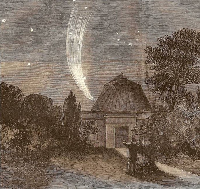 в 1858 году флорентийский астроном Джованни Батиста Донати (1826–1873) открыл долгопериодическую комету с периодом около 1950 лет, названную в честь открывателя. Комета Донати — одна из наиболее ярких комет, движущихся вокруг Солнца по вытянутой эллиптической орбите. Её орбита проходит на расстоянии 0,58 астрономической единицы от Солнца в перигелии и 300 астрономических единиц в афелии. С середины августа до начала декабря ее можно было наблюдать невооружённым глазом, что позволило исследовать её подробно.