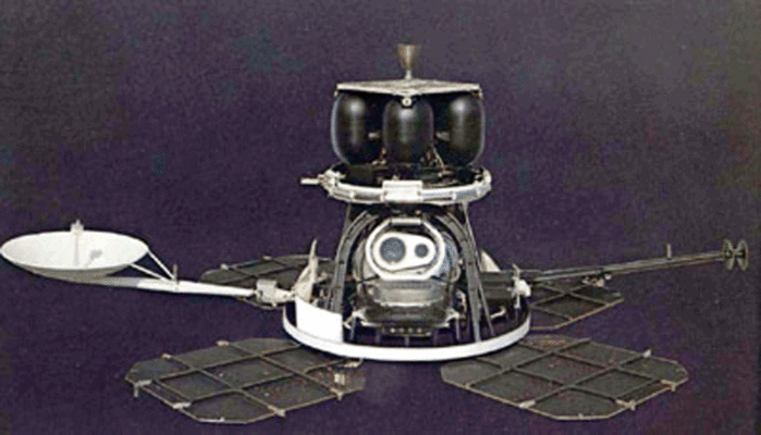 в 1966 году американская автоматическая межпланетная станция "Surveyor-1" (02185 / 1966 045А) с первой попытки совершила мягкую посадку на поверхность Луны в районе Океана Бурь в точке с координатами 2 градуса 27 минут южной широты и 43 градуса 13 минут западной долготы.