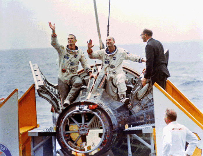 в 1966 году в Тихом океане приводнился спускаемый аппарат американского космического корабля "Gemini-9" (02191 / 1966 047А). На Землю возвратились космонавты Thomas Stafford и Eugene Cernan. Продолжительность пребывания космонавтов в космосе составила 3 суток 21 минуту.