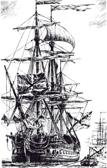 в 1696 году впервые русский флот принял участие в боевой операции, отрезав Азов от моря.
