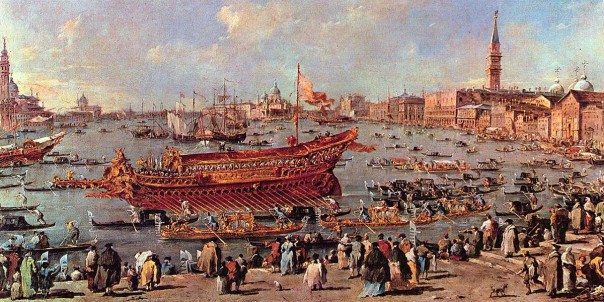 Бучинторо (церемониальная галера венецианских дожей) XVIII века на картине Франческо Гварди.