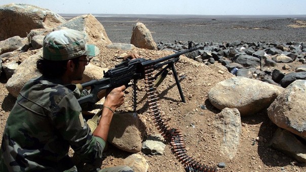 САА ведёт огонь из крупнокалиберного пулемёта по машине террористов у Голанских высот RT © Александр Мельников, проект WarGonzo