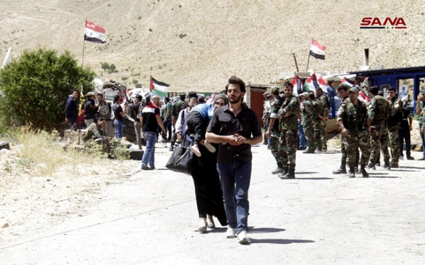 Корреспондент агентства САНА сообщил, что из ливанского района Эрсаль на КПП прибыло около 450 человек, затем они на автобусах будут перевезены в свои селения в Западном и Восточном Каламуне.