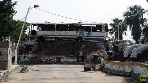 Сразу за автобусом, установленным на насыпи в качестве заграждения, располагается площадка, заваленная таким же металлоломом, — до войны здесь была автостанция. Но после того как «оппозиционные» группировки заняли нейтральную полосу у Голанских высот, а, по сути, взяли под контроль линию разграничения между Сирией и Израилем, некогда оживлённый транспортный узел превратился в поле боя.