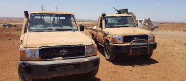 Недалеко от поселка Канакер джихадисты передали российским военным 2 пикапа, 2 крупнокалиберных пулемета и множество единиц стрелкового оружия.