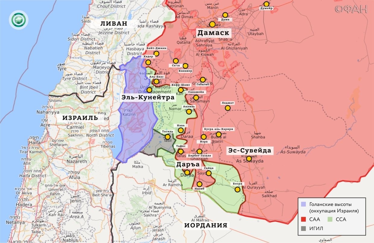 Местные и сирийские источники заявляют о том, что в настоящий момент ЦАХАЛ готовитсч нанести новые удары в ходе антитеррористической операции САА в провинциях Даръаа и Кунейтра. И хотя данные удары приводят к новому витку конфликта между Сирией и Израилем, они вряд ли каким-либо образом повлияют на стратегическую ситуацию в данных провинциях, поскольку оборона боевиков уже развалилась.