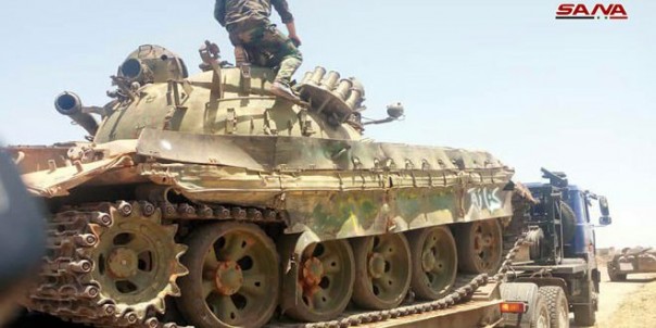 Военкор агентства САНА сообщил, что подразделению Сирийской армии были переданы танк, боевая машина пехоты (БМП) и пушка калибром 57 мм.