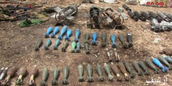 В районе Аль-Хуля на севере провинции Хомс в ходе зачисток территорий компетентные органы нашли схроны бандформирований с большим количеством среднего огнестрельного оружия, противотанковых снарядов, различных боеприпасов и взрывных устройств, оставленные террористами перед их отправкой на север Сирии. Об этом сообщил военкор агентства САНА в провинции.