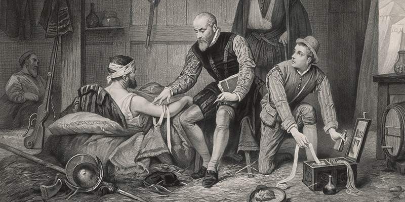 Так бы это безобразие и продолжалось, если бы однажды во время итальянской кампании 1537 года молодой французский хирург Амбруаз Паре не оказался в ужасной ситуации — множество раненых, и почти нет масла!
