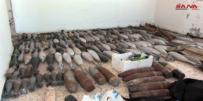 По словам корреспондента агентства САНА, инженерные отряды обнаружили оружие, боеприпасы, самодельные взрывные устройства, противотанковые и ракетные гранаты.