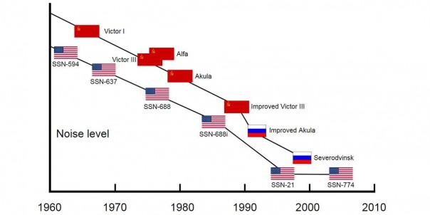 Информацию о «драматическом» сниженим шумности советских лодок III поколения, построенных во второй половине 1980-х годов и позже, легко можно обнаружить в специальной литературе.