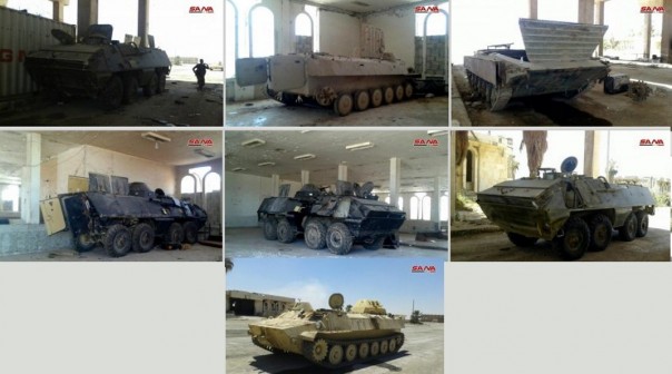 17.40 Сирийские военные обозревают трофеи, доставшиеся им на КПП «Нейсиб» на границе с Иорданией. Боевики оставили данный район, не оказывая сопротивления, не успев уничтожить имеющуюся у них бронетехнику и вооружение. В частности, военные захватили несколько БТР Чехословацкого производства, OT-64 SKOT. Ранее, исламисты неоднократно демонстрировали данные машины в своих пропагандистских видео.