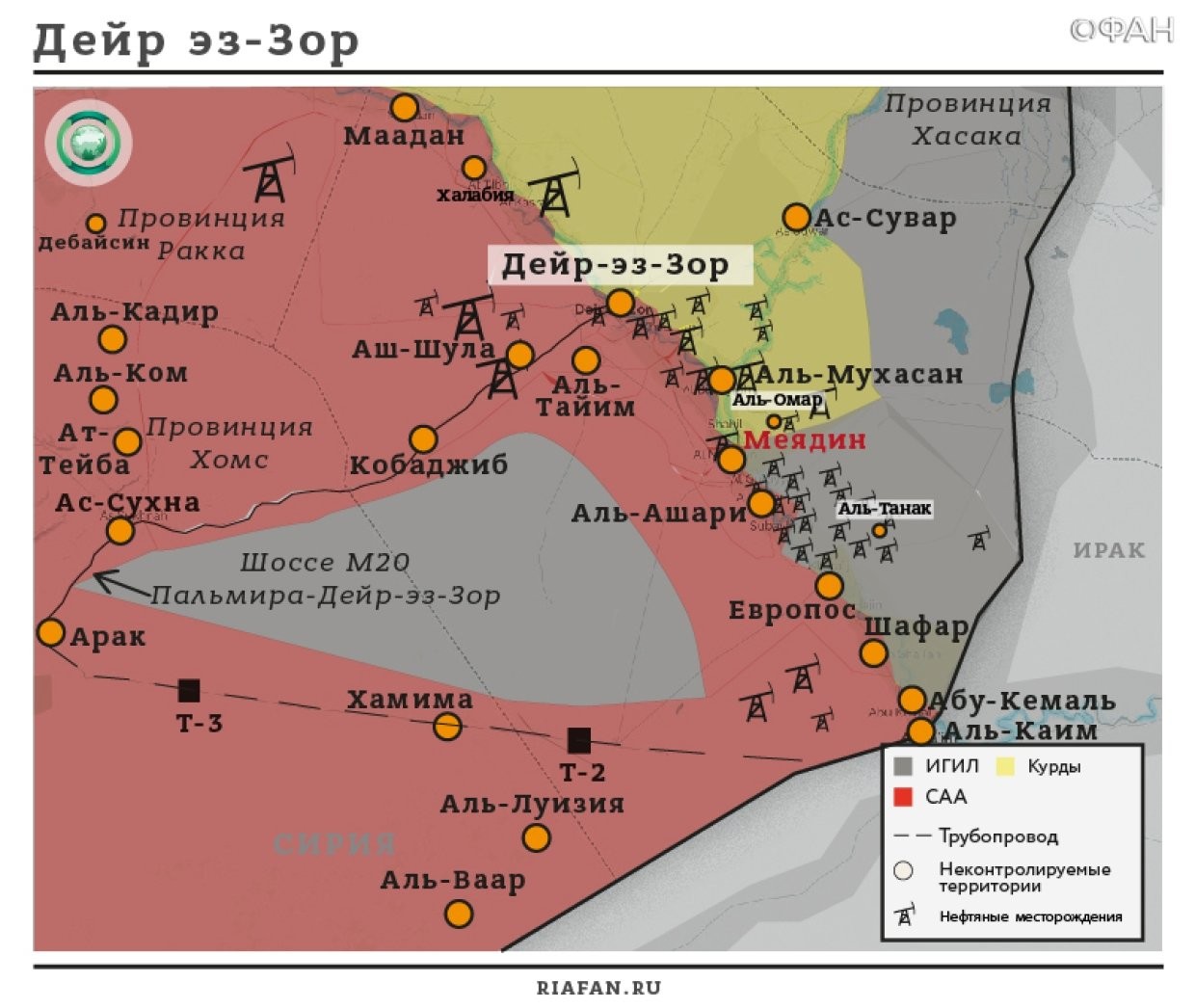 18 июля СДС заявили о том, что в провинциях Хасака и Дейр-эз-Зор их бойцы при поддержкк коалиции во главе США отбили 1100 кв.км территории.