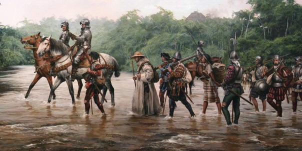 Триста испанцев в сопровождении трёх тысяч индейцев прорубали мечами и топорами путь в заболоченных джунглях.