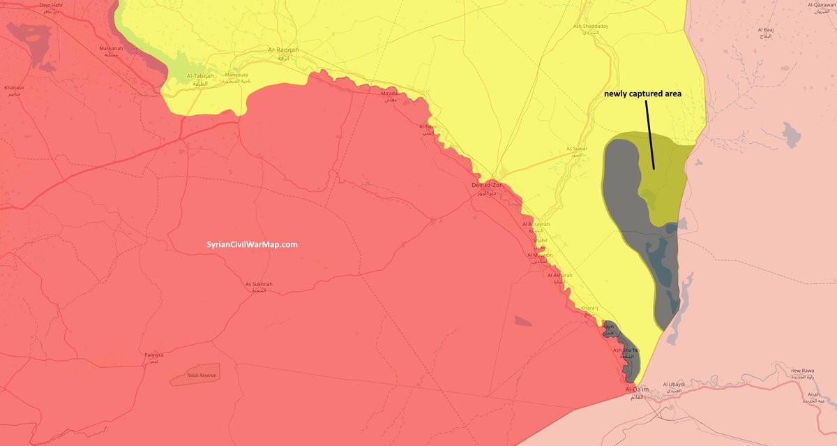 Сирийские демократические силы (SDF) заняли н.п. Хададжа (Hadajah), Джабал Хаддай (Jabal Haddaj), Аль-Мабак (Al-Mabaq), Аль-Бувара Шамлия (Al-Buwarah Shamliyah), Бир-эль-Рауда (Bir al-Rawdah), Аль-Аджи (Al-Ajij), Фав-аль-Таллаба (Fawq al-Tallabah), Аль-Авадж (Al-Awaj), Хадд аль-Джануби (Hadd al-Janubi), Таллаба (Tallabah), Аль-Барка (Al-Barqah), Джабал Кабил (Jabal Kabil), Аль-Хабура (Al-Khaburah) и Аль-Шахидин (Al-Shahidin), расположенные в восточной части провинции.