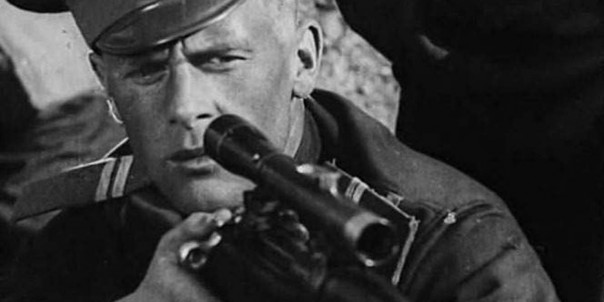 Пожалуй, один из лучших советских фильмов о войне вообще — и Первой мировой в частности. Точность деталей невероятная, благо создатели читали Ремарка и «гуру» британских снайперов Хескет-Притчарда. Героев вооружили настоящими канадскими винтовками Росса (их действительно использовали снайперы). Не забыли даже камуфляжный щиток для «Максима» и знаки «За отличную стрельбу».