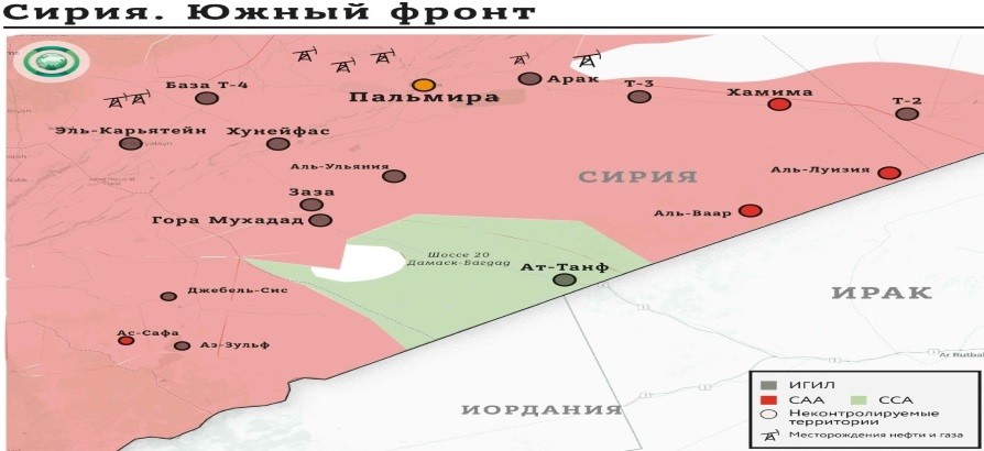 Однако ситуация в Эс-Сувейде и южных районах Сирии вообще может существенно осложниться из-за деятельности американских сил в так называемой 55-километровой зоне вокруг военной базы США «Ат-Танф». Там по-прежнему действуют антиправительственные группировки «Джейш Магавир ат-Таура», «Лива Шухада аль-Карьятейн», ««Куват Шахид Ахмад Аль-Абдо» и некоторые другие.