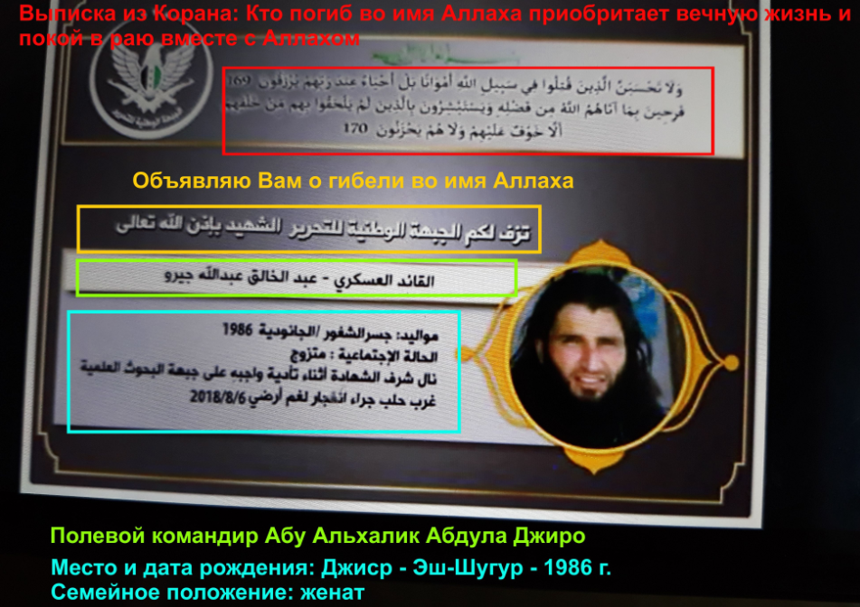 Очередной жертвой междоусобных столкновений между бандитскими группировками в Идлибской зоне деэскалации стал полевой командир протурецкого незаконного вооруженного формирования «Нур ад-дин-эз-Зинки» Абу Альхалик Абдлула Джиро.