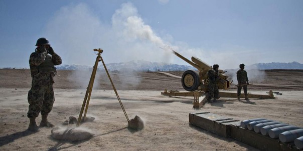 Расчёт гаубицы Д-30 армии Афганистана ведёт огонь