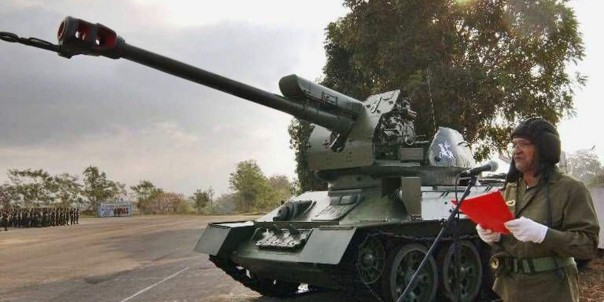 С Т-34 радикально решили разобраться и кубинцы. Они уже десятки лет рихтуют остатки советского наследия, чтобы хоть как-то усилить огневую мощь старой бронетехники. Когда-то в Заливе Свиней Т-34 бодро били по контрреволюционному десанту, а сейчас служат базой для тех же Д-30. Гаубицу умело вмонтировали в разрезанную родную башню, обеспечив круговое вращение.
