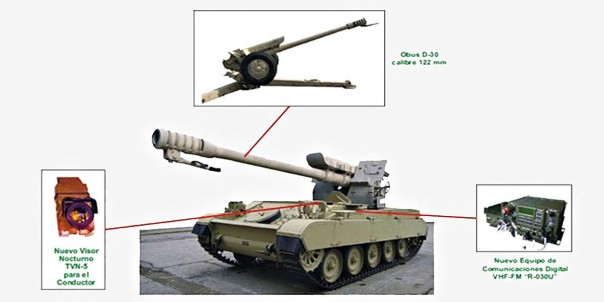 Перу в деле подобного САУ-строения далеко не первопроходец. История присобачивания буксируемых гаубиц Д-30 на танки началась на Ближнем Востоке. К 70-м годам в египетской армии ещё осталось достаточное количество танков Т-34, присланных «большим советским другом», но безнадёжно устаревших. Являться на дуэль даже с израильскими «супершерманами» со 105-мм пушками с калибром 85 мм было уже как-то некомильфо.