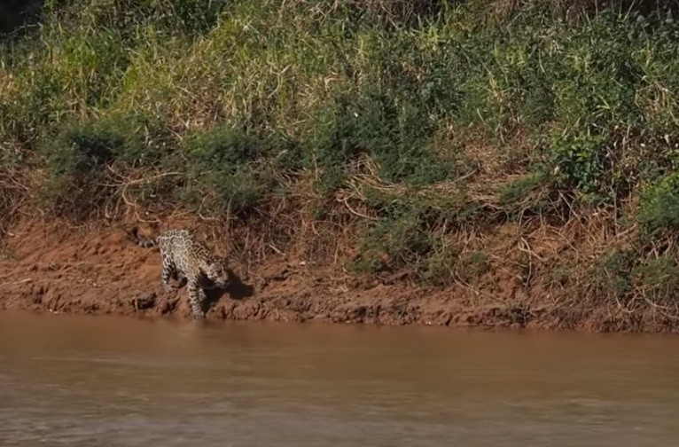 Пару лет назад экологу в Бразилии удалось снять на видео нападение ягуара на каймана. Незаметно подкравшись к рептилии, хищник настигает её одним быстрым броском.