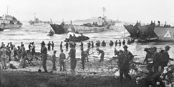 Солдаты британской 51-й (горской) пехотной дивизии высаживаются на Сицилии
