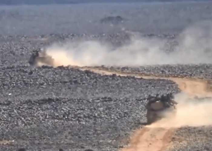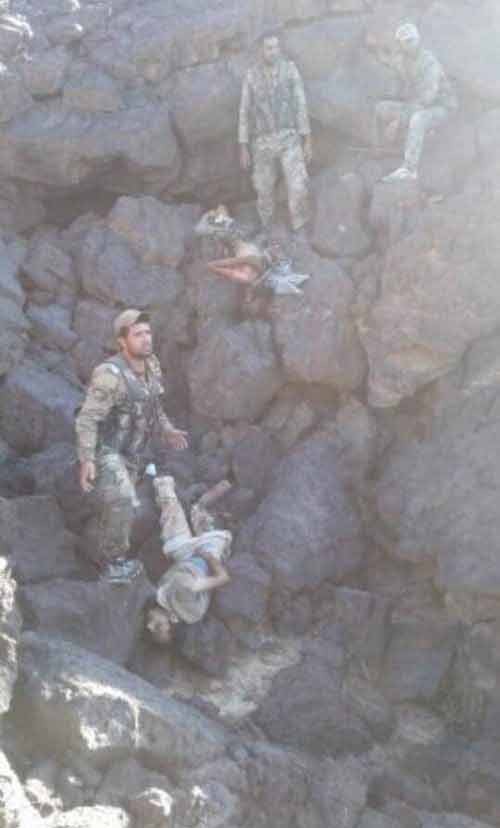 Сирийские военные и российские спецназовцы ведут прочесывание территории каньона Аль-Сафа (российский военный (возможно) показан на секунде 13)