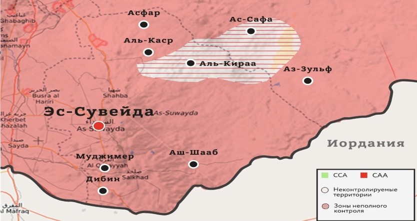 Военные источники портала Damascus Now уверены, что бандгруппы ИГ, пока остающиеся в кольце окружения САА в пустынно-горной местности к северо-востоку от Эс-Сувейды, в ближайшее время будут вынуждены прекратить сопротивление, поскольку запасы продовольствия и патронов боевиков, как предполагается, уже должны быть почти на исходе. Большая часть отрядов джихадистов укрывается в предместьях населенного пункта Ас-Сафа.