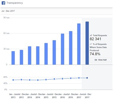 Количество правительственных запросов на получение данных: