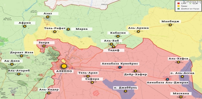 Подпольные группы курдских Отрядов народной самообороны (YPG) заметно увеличили интенсивность диверсионных вылазок против протурецких отрядов ССА в северных районах провинции. Так, в результате детонации самодельного взрывного устройства в населенном пункте Джубб Аль-Барази к западу от Манбиджа был убит один из высокопоставленных членов «Свободной армии», сообщает курдское агентство Kurdistan 24.