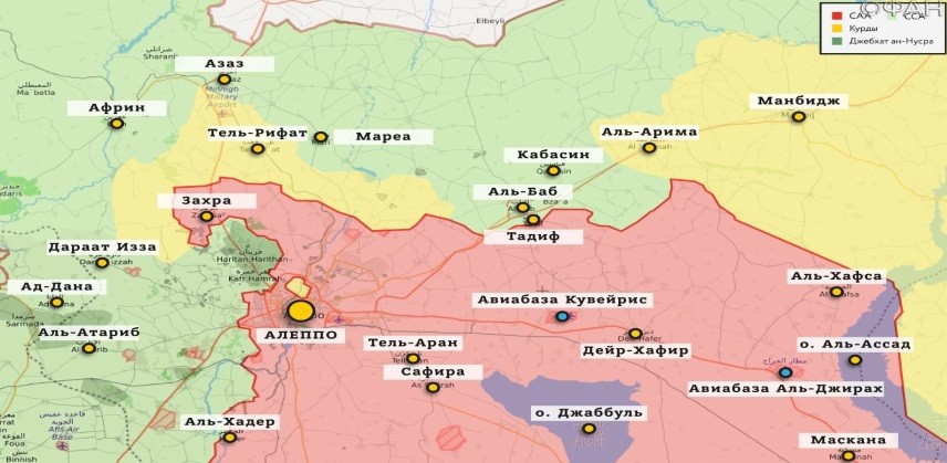 Алеппо. Боевики группировки «Ахрар Аль-Шаркия» вступили в боестолкновение с военной полицией «Аль-Джаиша аль-Ватани аль-Сури» («Сирийской национальной армии») в городе Джарабулус (Jarabulus). Сообщается, что в ходе инцидента были ранены несколько человек.