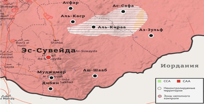 Бойцы правительственных войск САР продвигаются в районе вулканического плато Ас-Сафа на северо-востоке провинции Эс-Сувейда, передавал военный источник на своей странице в социальной сети Twitter (@SyriawatanNews).