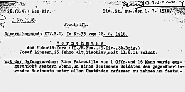 С началом заварухи Липман отполз подальше от своих товарищей во тьму и укрылся в воронке. Когда всё стихло, он оставил свою каску и винтовку и пополз в сторону вражеских окопов. Возле которых на ломаном немецком стал кричать, что хочет сдаться.