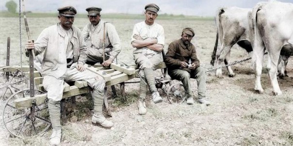 Как известно, дурная идея заразительна. Французы, которым в конце 1914 пришлось снять ярко-красные штаны… нет, не из соображений маскировки, а потому что краситель закупали в Германии — так вот, французы тоже стали носить голубые обмотки.
