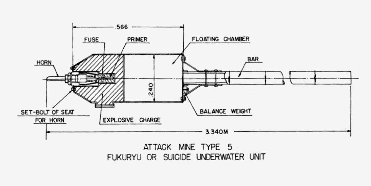 Самой безумной идеей в их арсенале были живые морские мины «Фукурю» («Крадущийся дракон») — водолазы с 10-кг зарядом взрывчатки на длинной палке.