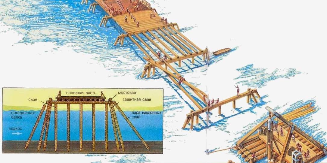 Постройка моста через Рейн по приказу Юлия Цезаря