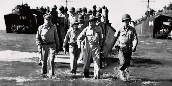 Генерал Макартур высаживается в заливе Лингаен на острове Лусон, 9 января 1945 года