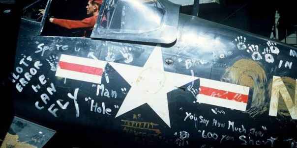 Вот техники и берутся за краску, покрывая весь самолёт максимально весёлыми и интересными посланиями невнимательному летуну и своим коллегам с другого авианосца. Пусть теперь они поработают, перекрашивая этот чёртов истребитель. Страшного в этом почти ничего нет — в морских условиях машины приходится подкрашивать регулярно.