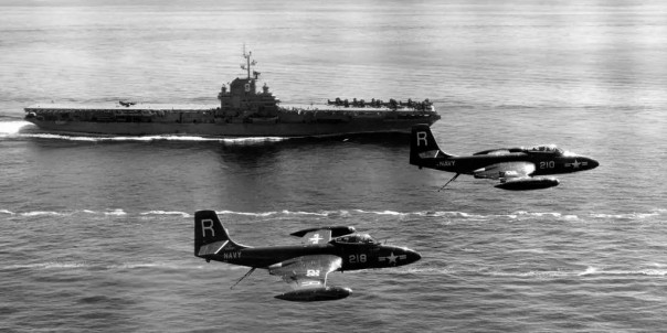 А это F2H «Баньши» всё того же многострадального «Корал Си» получил новые знаки отличия, побывав в гостях на авианосце «Рэндольф».