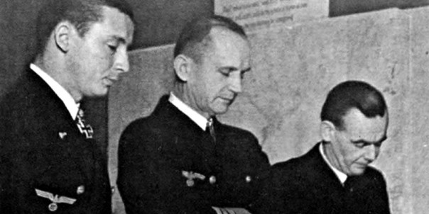 Гросс-адмирал Карл Дёниц (в центре) с офицерами, 1943 год