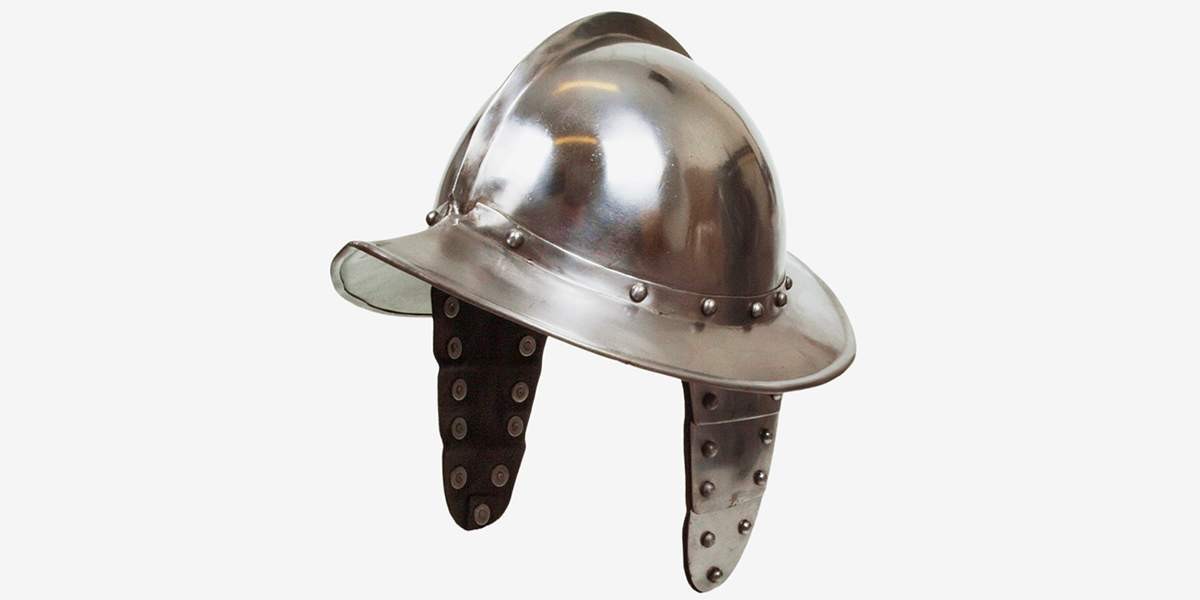 Морион был хорош всем — удобная форма, способствующая отведению ударов, небольшой вес, прекрасный обзор для воина. Но развитие огнестрельного оружия привело к исчезновению этого головного убора. Причина проста — поля мориона оказались крайне неудобны для аркебузира, прижимающего к щеке приклад своего оружия.