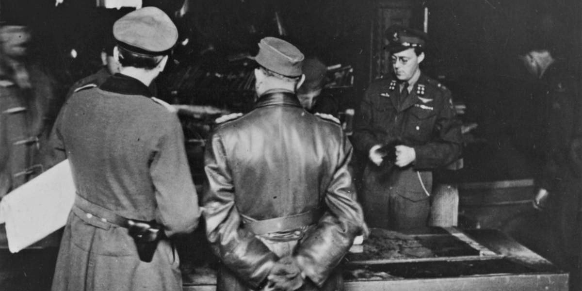 Принц Бернард (справа) присутствует при подписании капитуляции