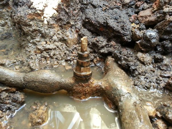 Современный водопроводный счётчик на свинцовой трубе 19-го века