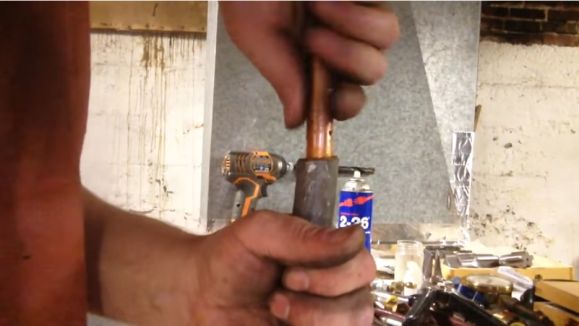 Рассверливается внутренний диаметр свинцовой трубы под наружный диаметр медной